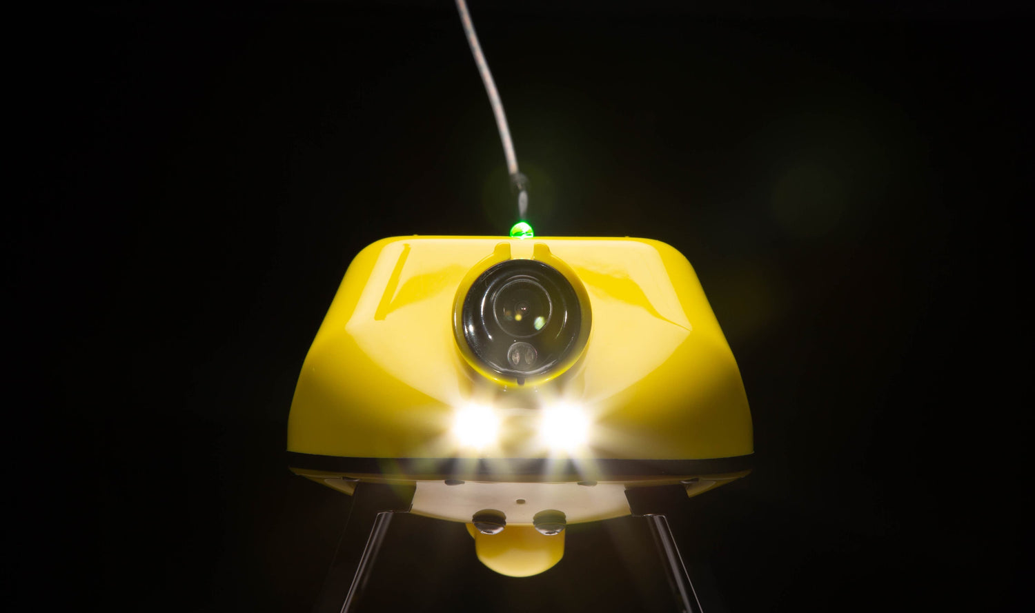 Small enough to fit down an icefishing hole and runs for up to four hours on one charge.